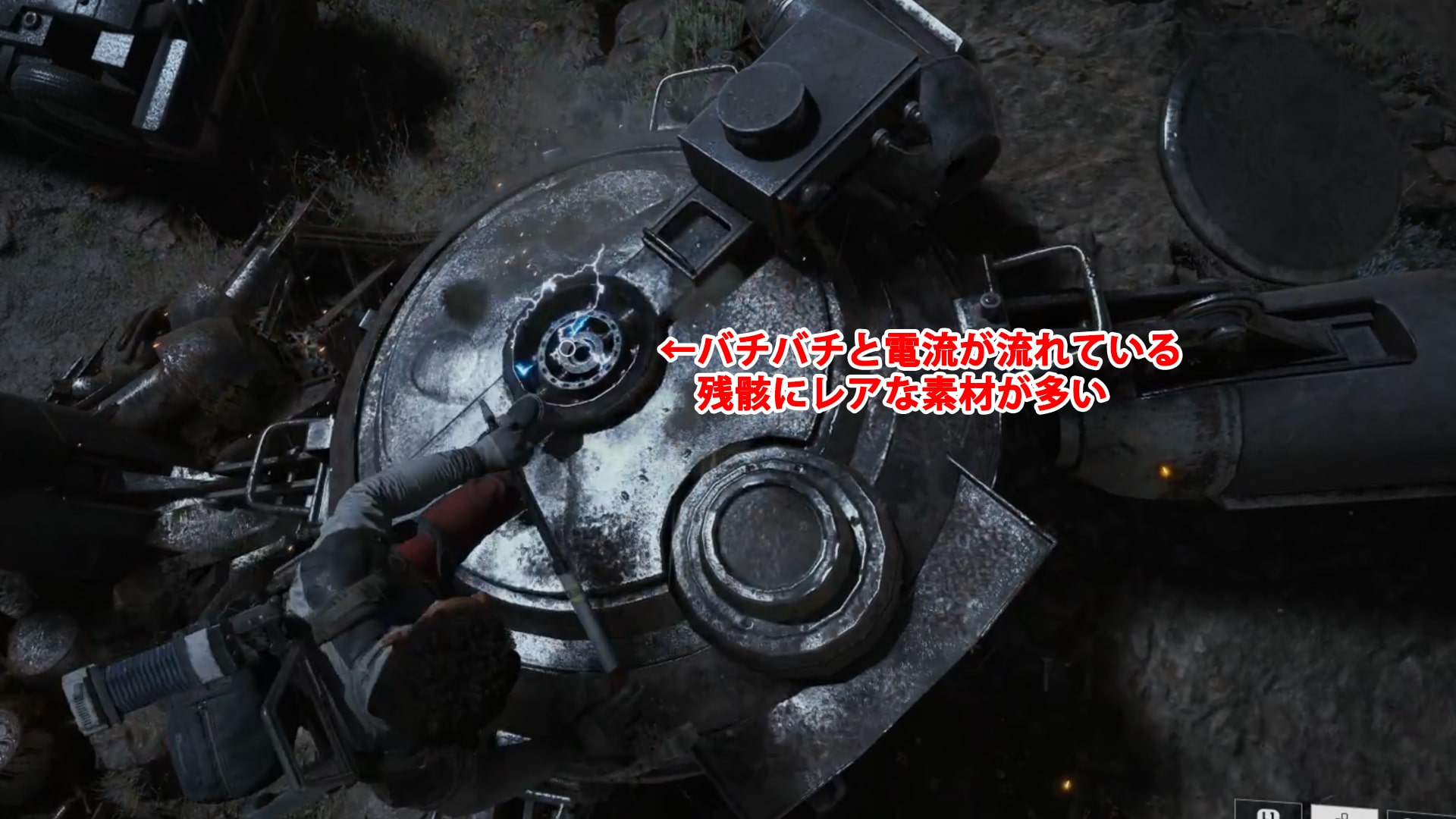 特に漁る部分がバチバチと電流が流れているものは、レアな素材が出る場合が多く、さらに周辺に何体かあるので、まとめてロケッティアドライバーを入手するのも可能です。