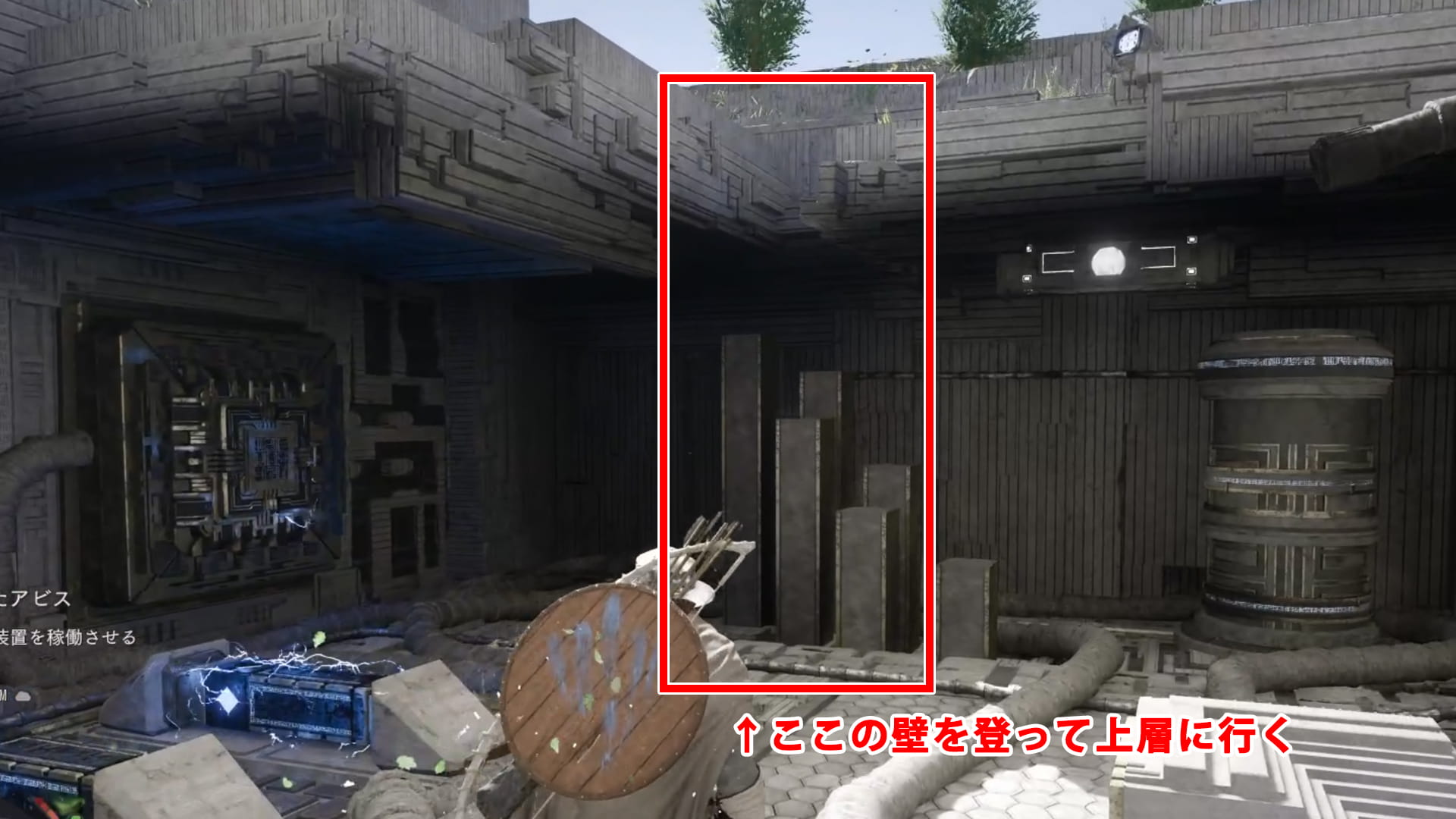 電源装置は上の層にあるので、画像の場所から壁をよじ登って上へ行きます。