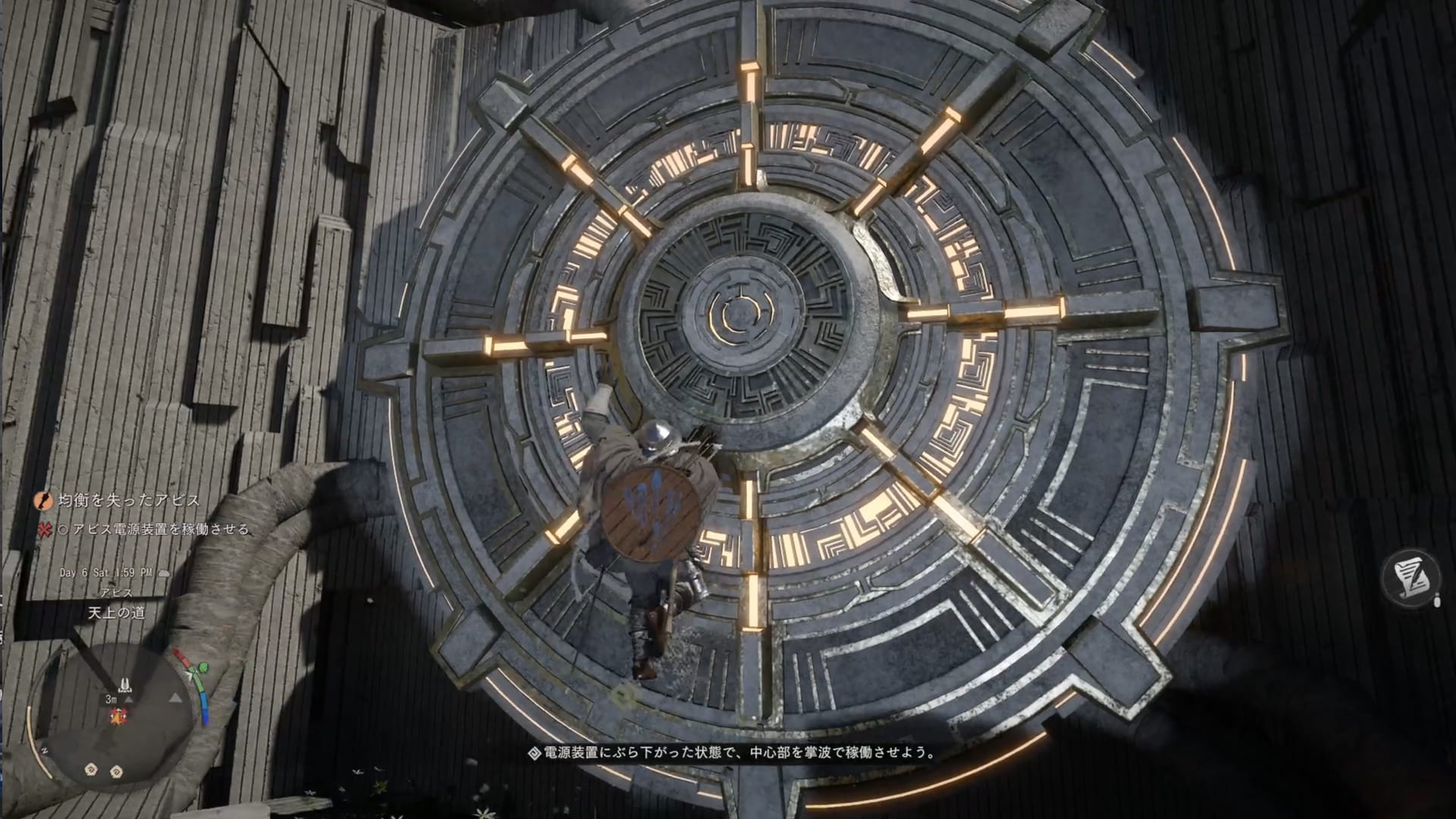 装置の中央付近まで登れたら、そのまま掌波を打ち込むと稼働させることができます。