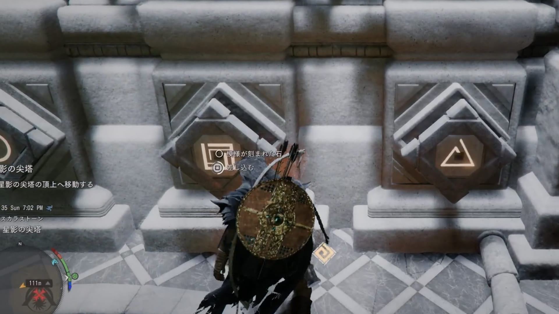 まずは「模様が刻まれた石」を入手する必要があります。