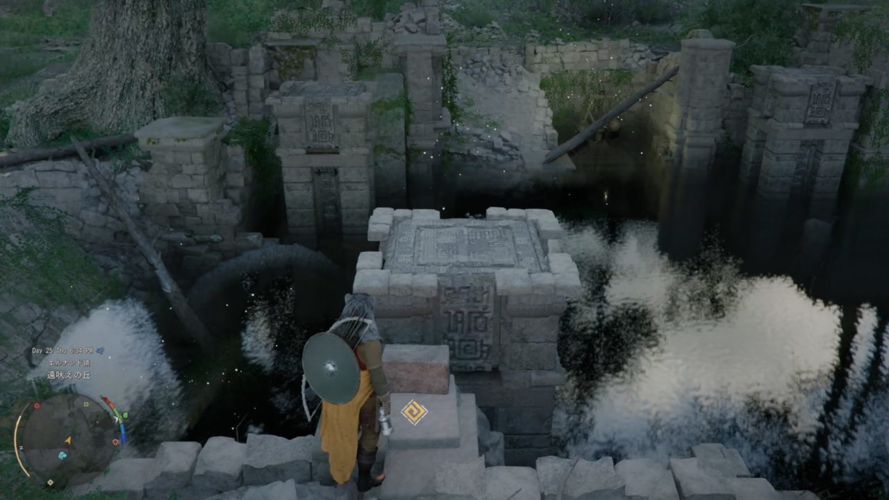 石柱に囲まれた池が、遠吠えの丘の遺跡になります。