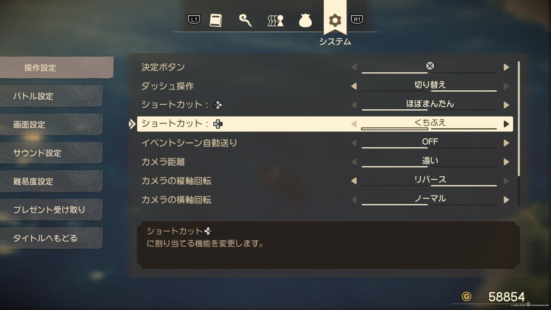 まずはシステムの「難易度設定」を調整しましょう。