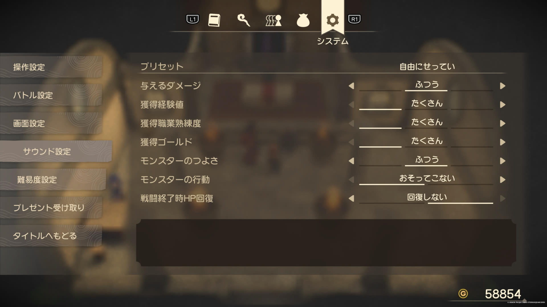 体験版の続きから高レベルで始める場合は、最初は難しめに調整しておいた方が個人的にはいいと思います。