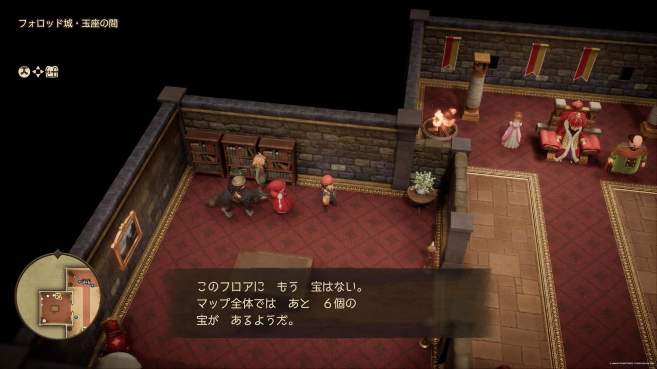 上の画像の場合だと、玉座の間にはアイテムが無いですが、城全体にはまだ6個のアイテムがあるということになります。