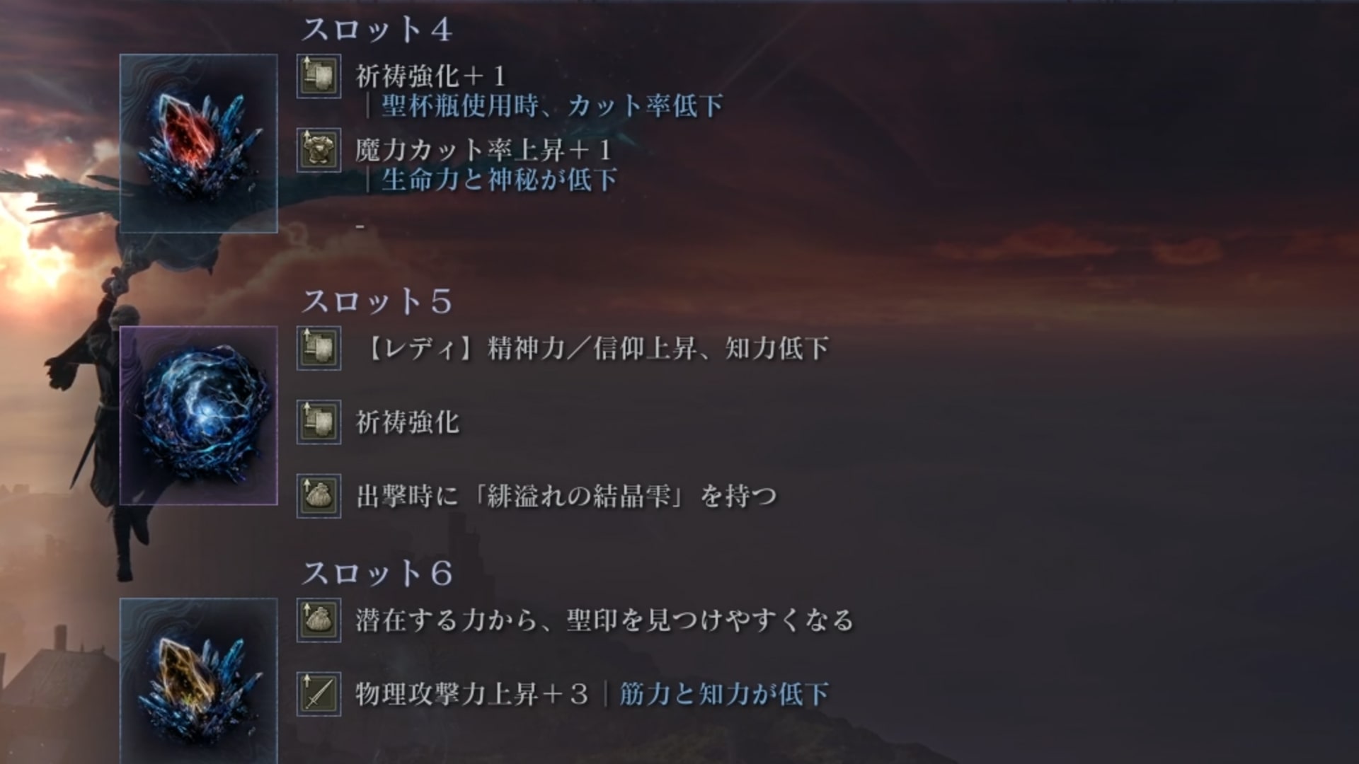 ◆深層遺物によるビルド変更一覧(魔術/祈祷へ)