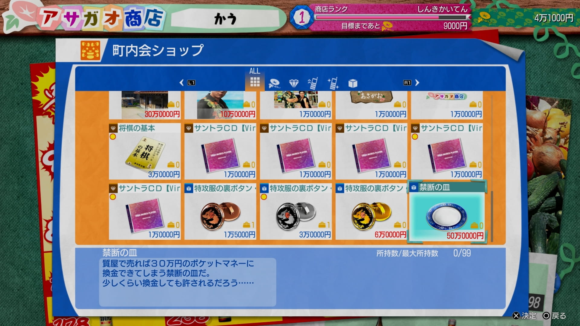 買うのにかなり時間がかかりますが、「禁断の皿」を町の質屋で売れば30万円の収入になります。