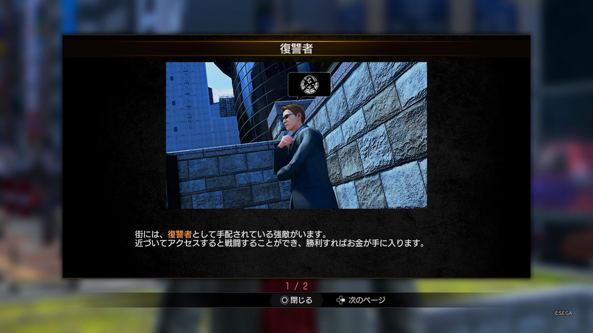 要は賞金首みたいなもので、神室町や沖縄の町にいる復讐者を倒すことによって、その場で1万円以上の報酬を入手することが可能です。