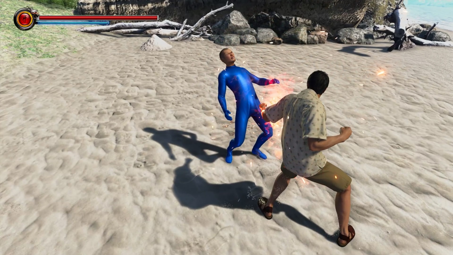 3章からアサガオの前の浜辺で発生するサブクエ「殴ってみろ屋」。