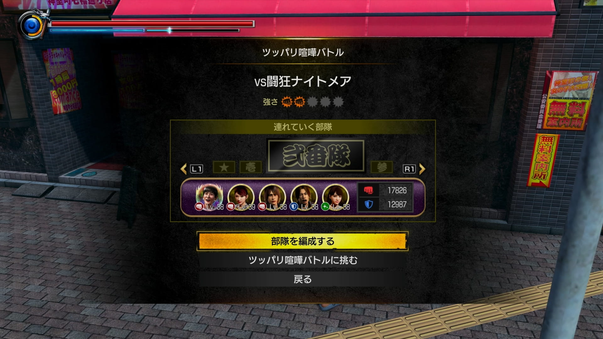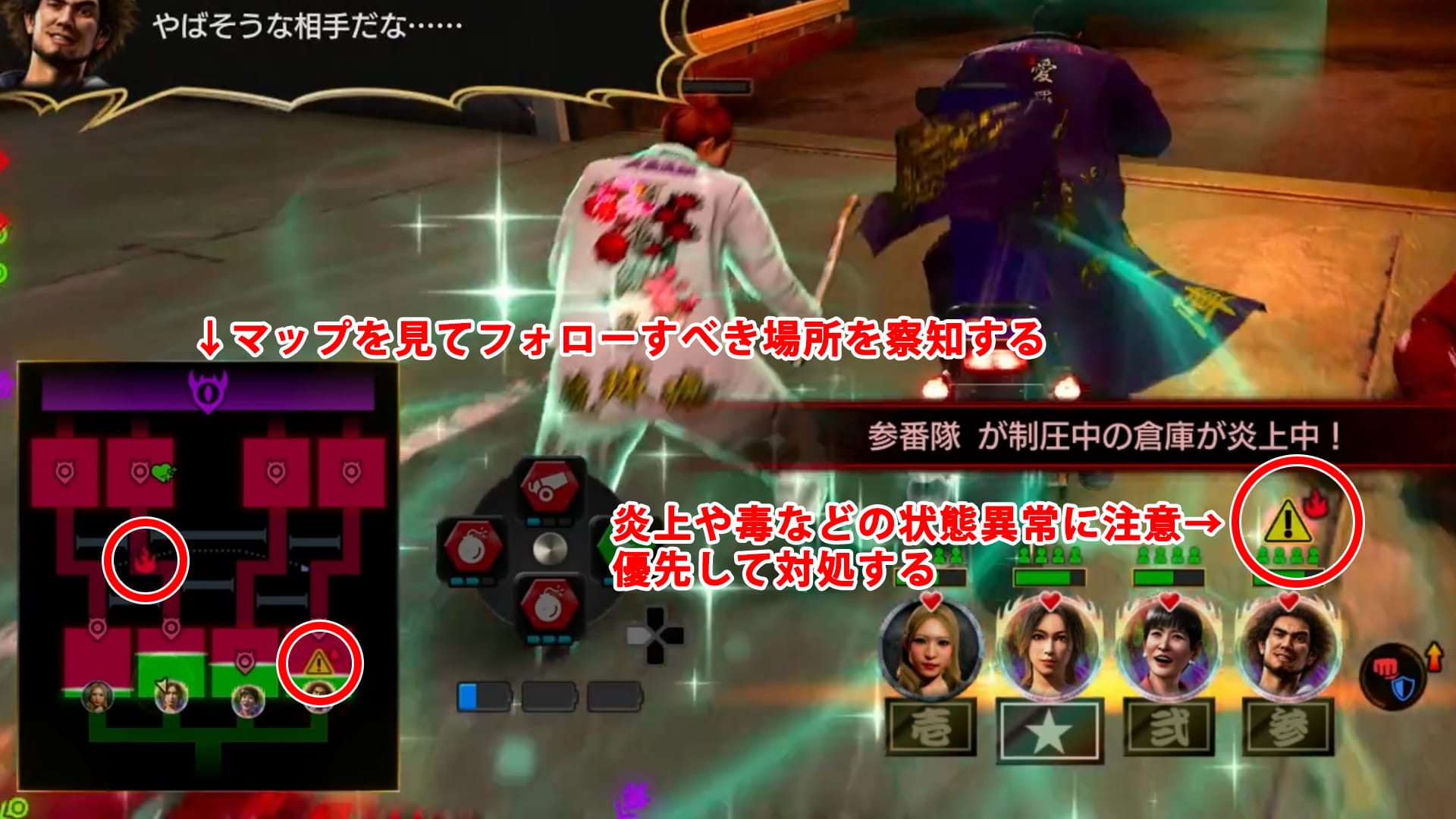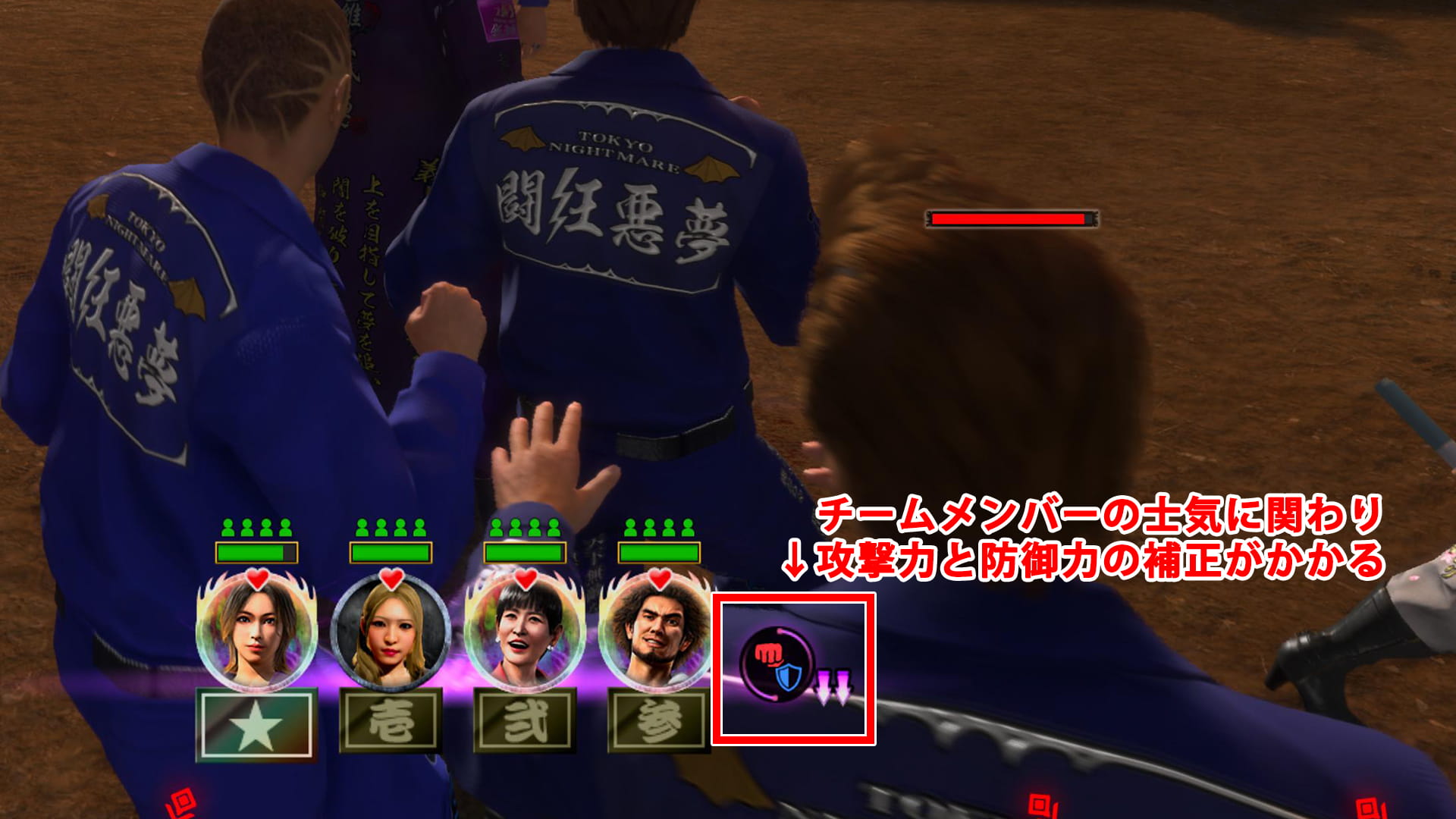 そのため、桐生の手助け無しでも機能するような精鋭チームを1~2つ作っておくと、桐生の移動が少なくなって戦闘のフォローが楽になります。