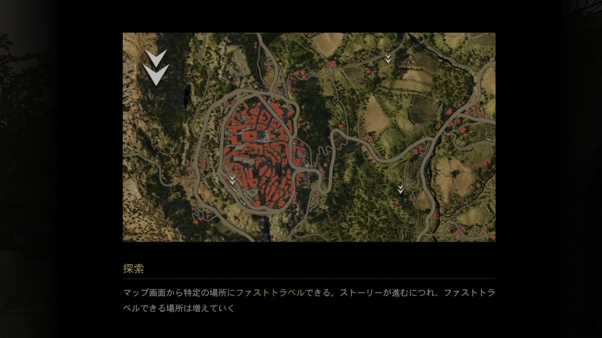 ファストトラベルの場所は、ストーリー進行によって解放されていき、マップ上から自由に移動することができます。