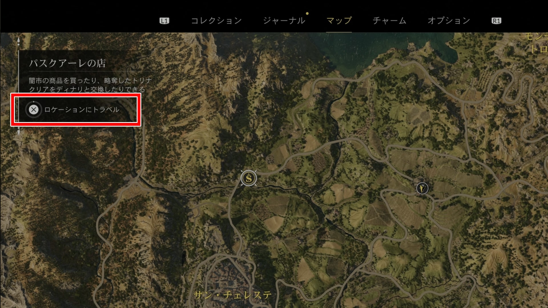 チャプター進行中とは違って、探索モードではファストトラベルが可能となっています。