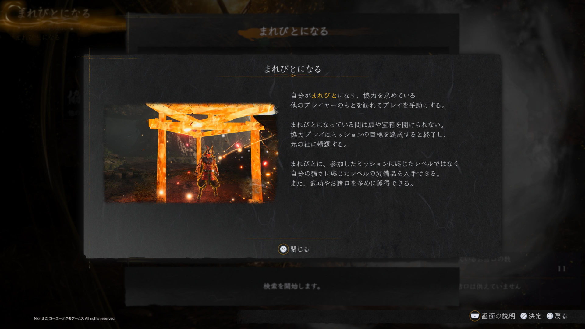 社の機能のうちの一つで、他プレイヤーの世界に入って協力・手助けする「まれびとになる」が可能になります。