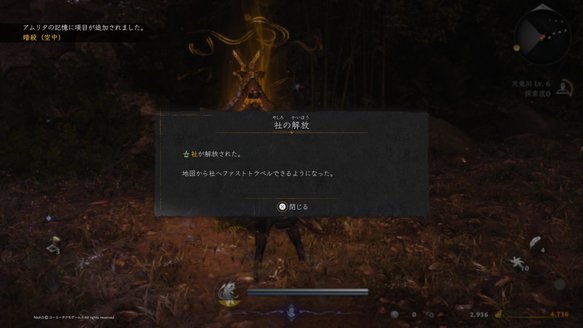 最序盤の難敵「山県昌景」を撃破した後に少し進めると、ファストトラベルの拠点となる「社」が解放されます。