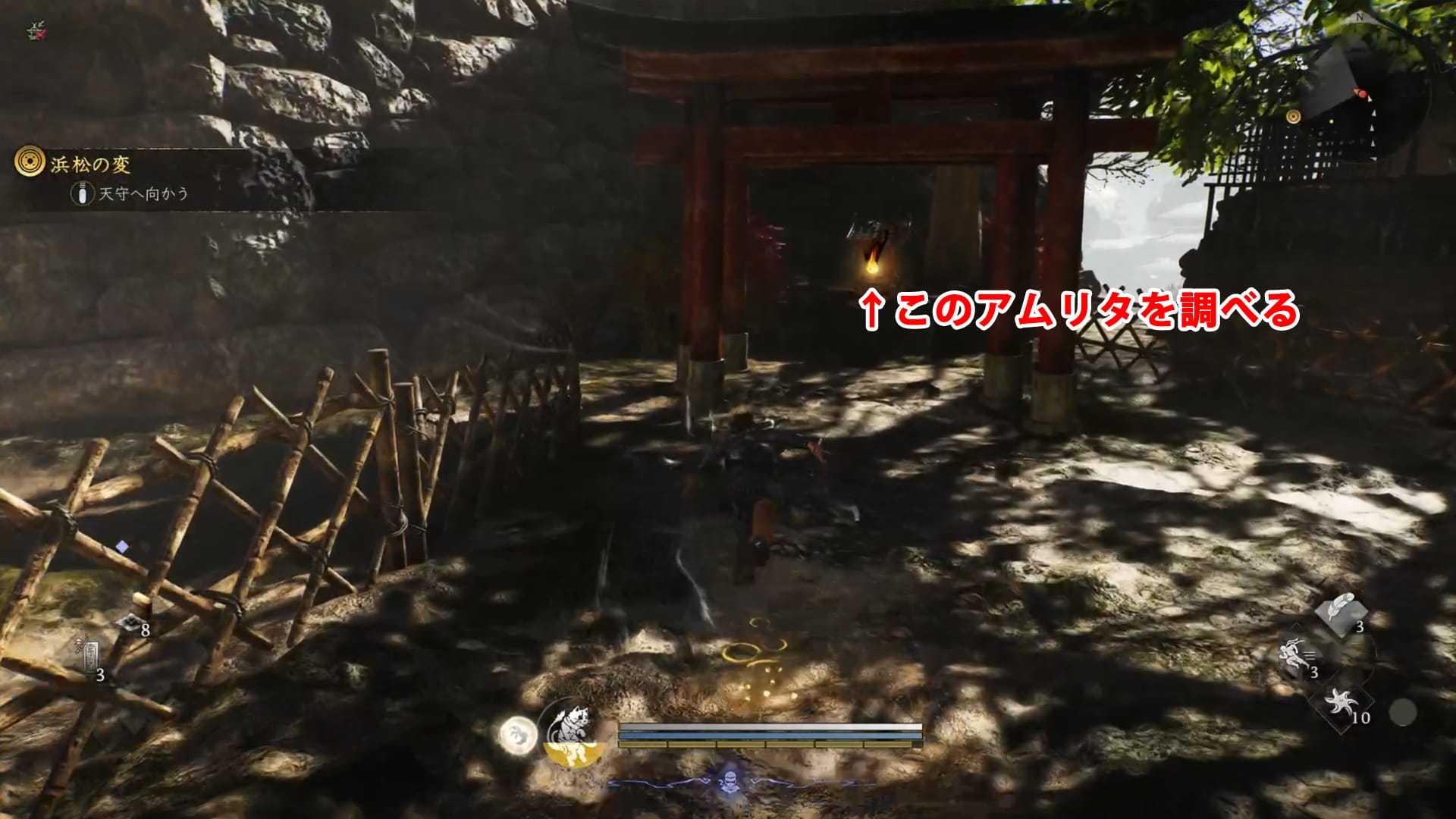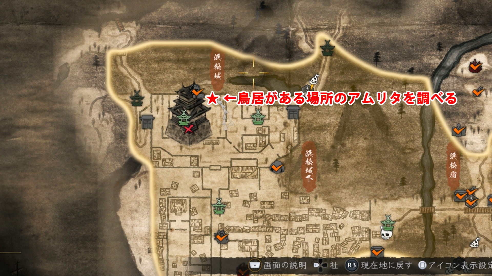 浜松城の城壁沿いに北東へ進んで行き、鳥居がある場所のアムリタを調べます。