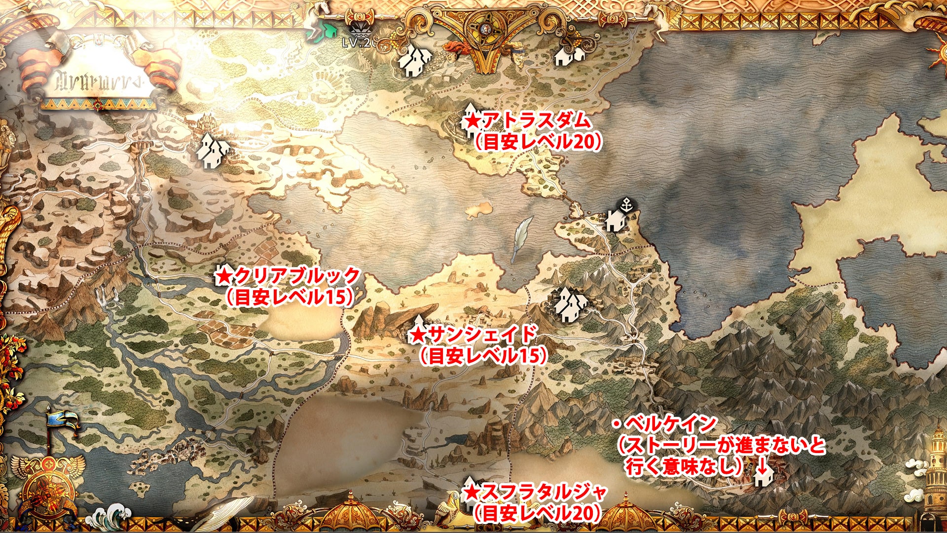 アトラスダムとスフラタルジャは、レベル40近い高レべルエリアを通らなければいけないので、最低でもレベル20くらいは欲しいです。