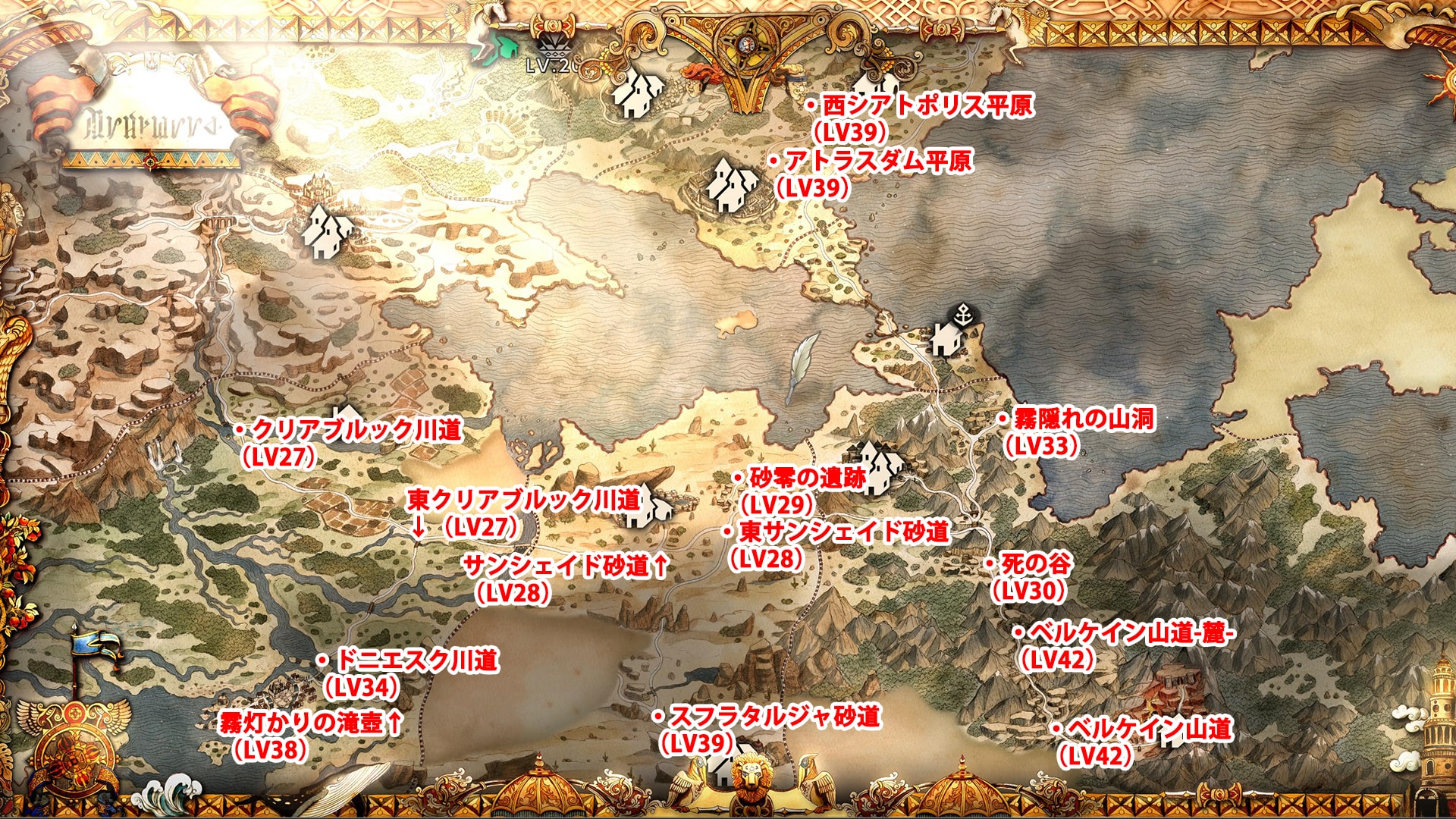 今回紹介する街へは、レベル40近辺の高レベルエリアを通るので、レベル20くらいは必要になる場所もあります。