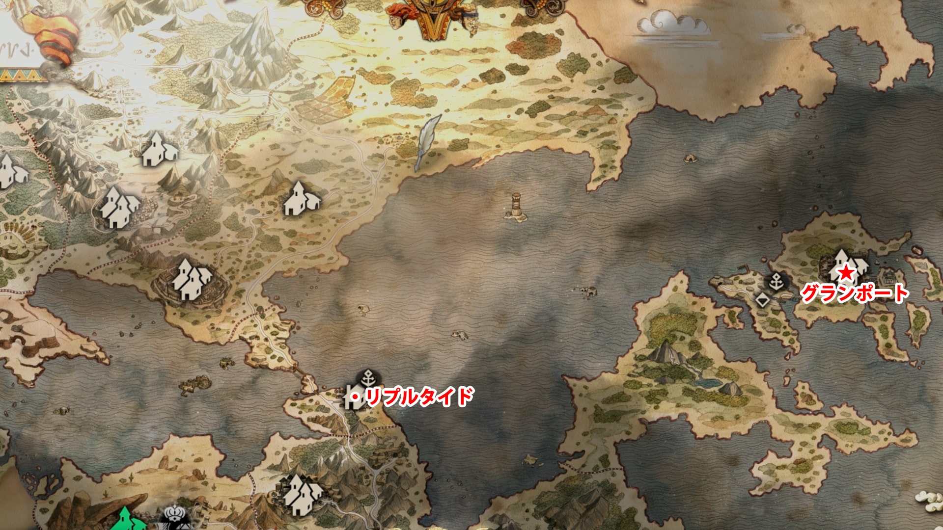 グランポートへは船を入手できればすぐに行けるので、青燃石2つは入手時期としてほぼ同じくらいになります。