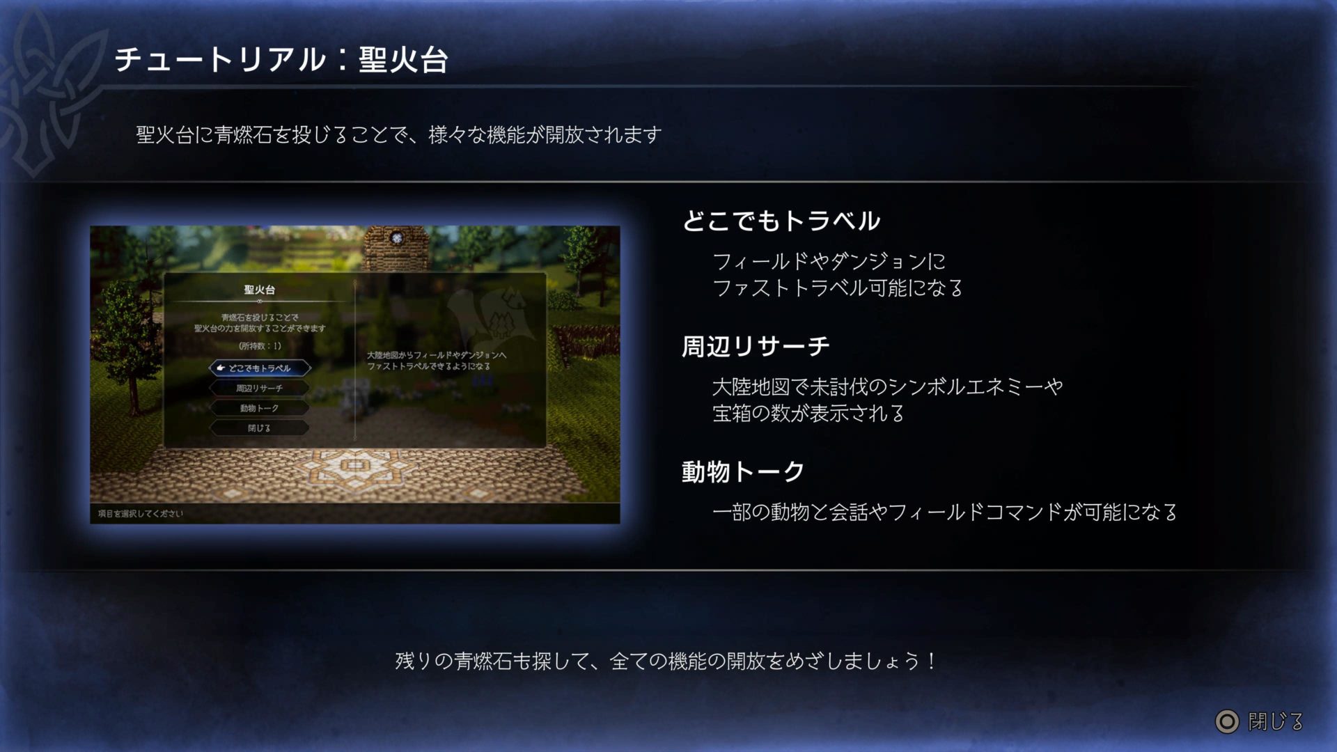 今回は「オクトパストラベラー0」の青燃石の入手場所と聖火台解放の優先順位について解説していきます。