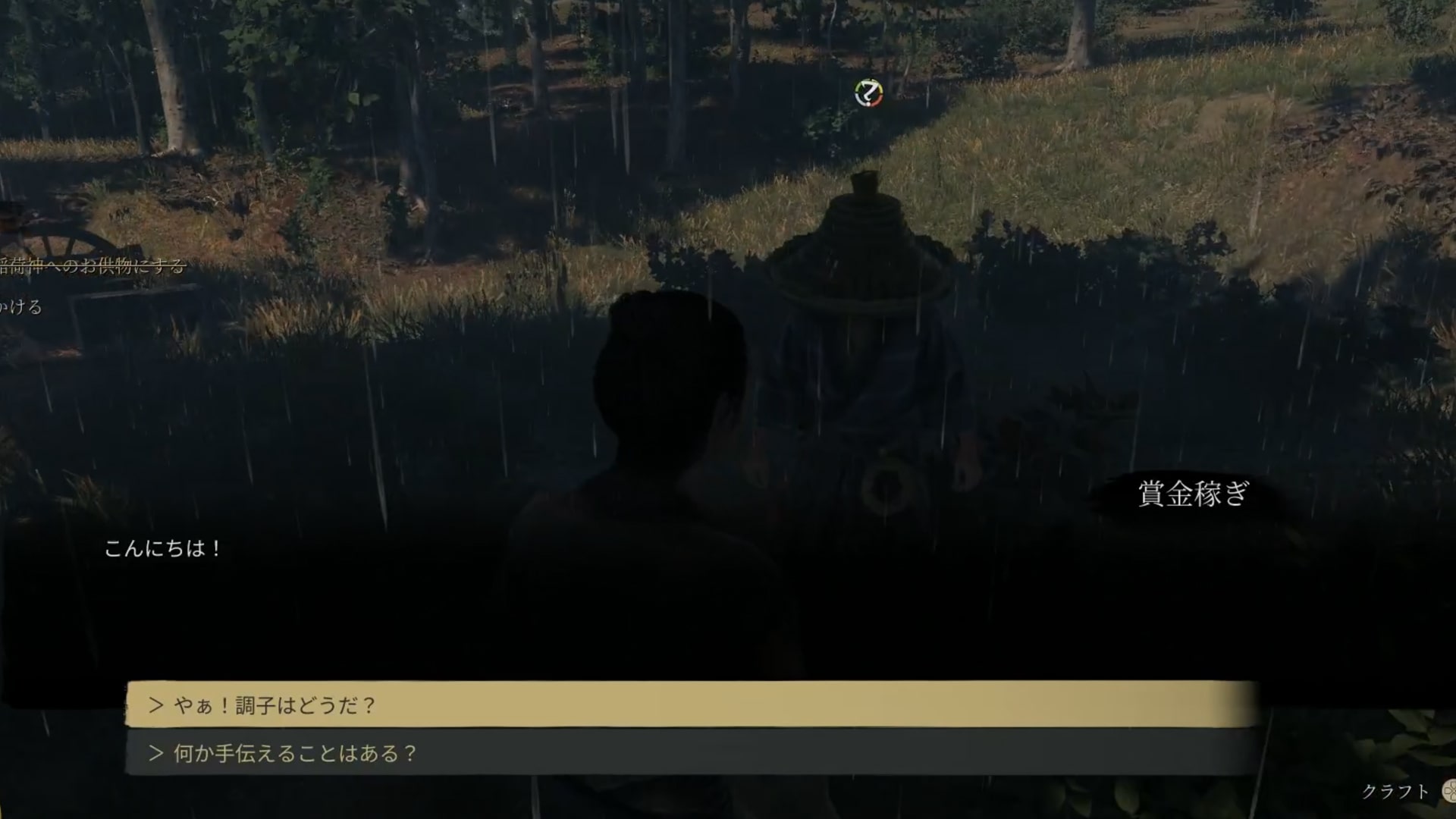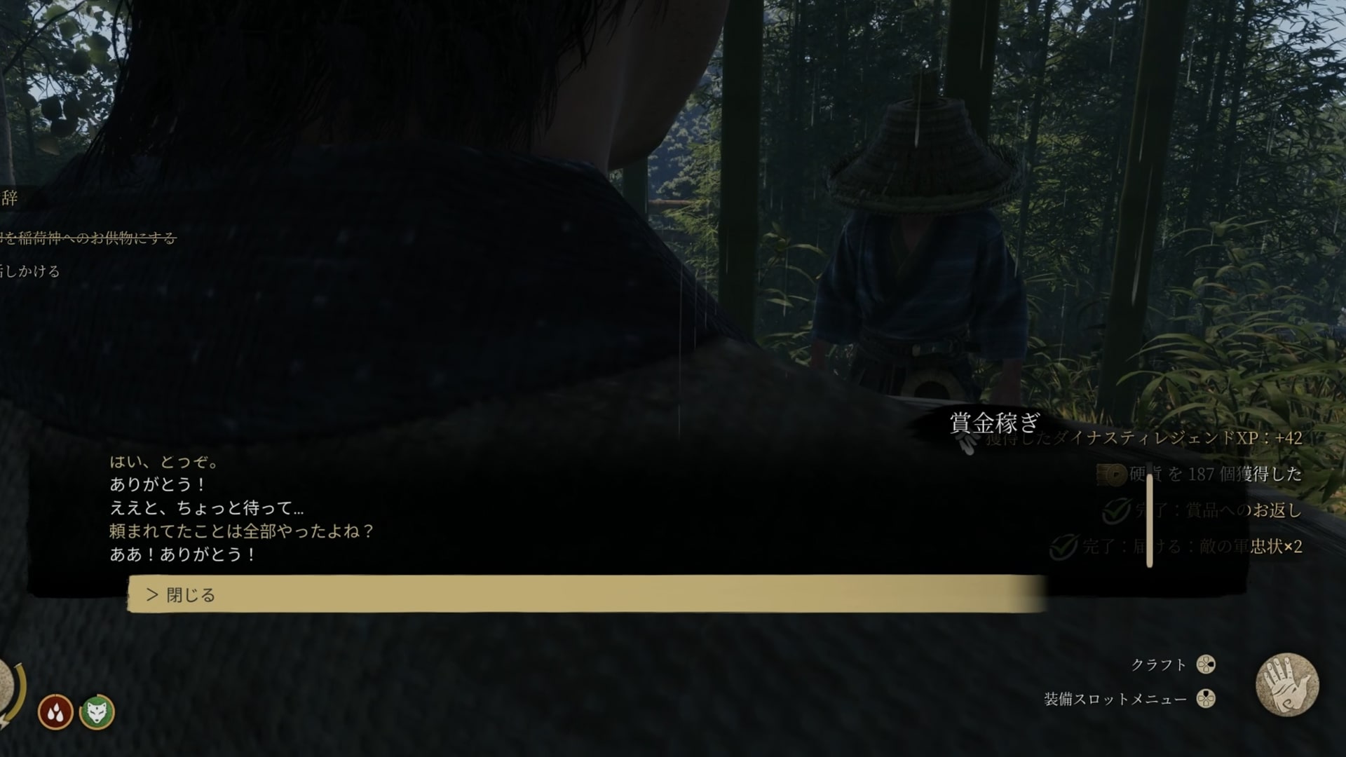 発生場所はランダムかもしれないですが、この賞金稼ぎはサイドクエスト「静かな賛辞」で訪れる稲荷神社の付近にいました。