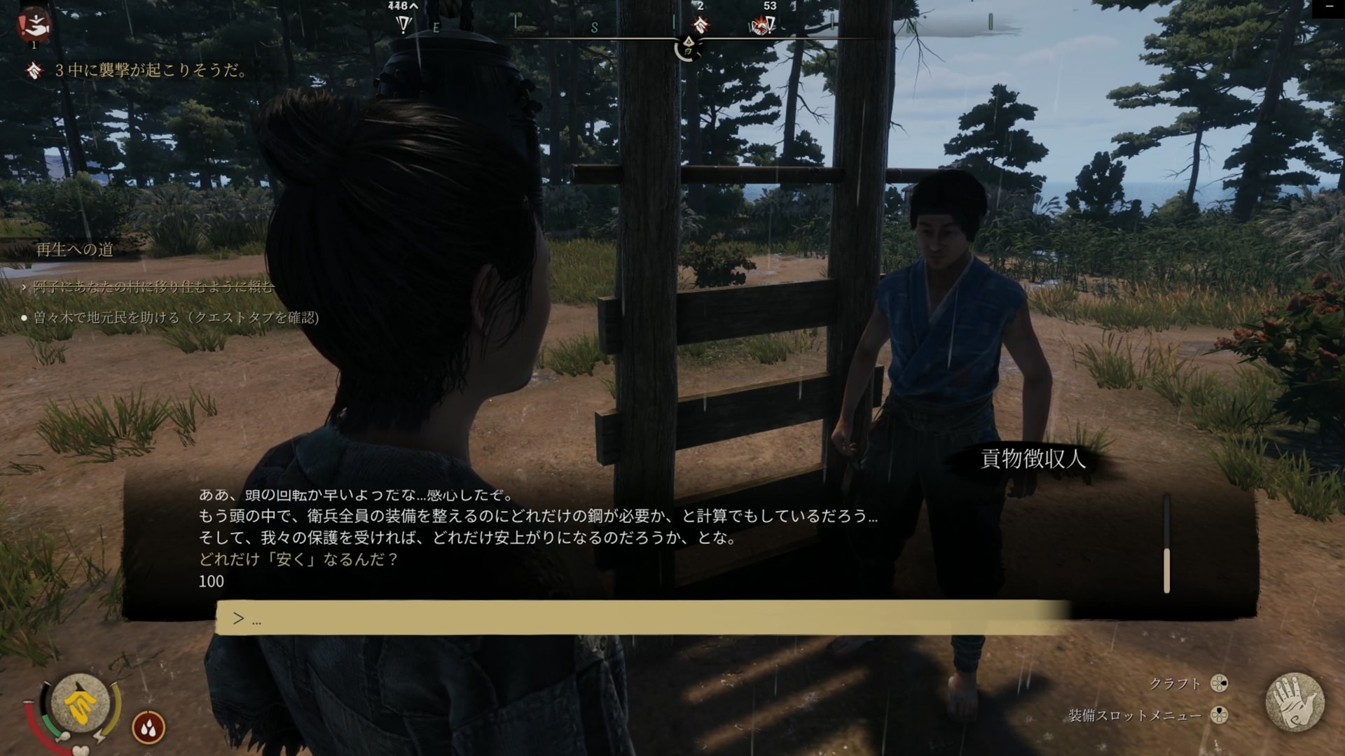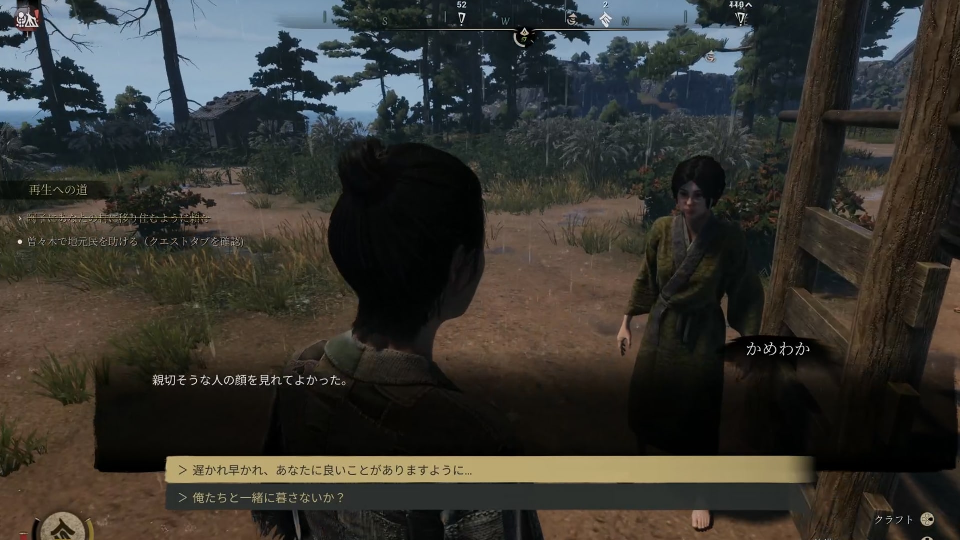 曽々木の藤七と会話するまでは、クラフトや採取のチュートリアルになるので省略。