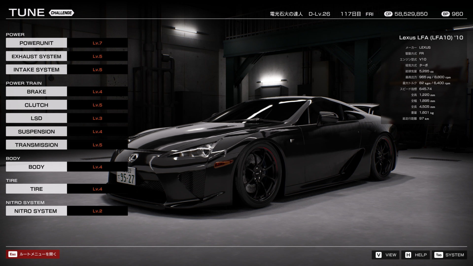 ステージ5をクリアするために使用した「Lexus LFA(LFA10)’10」のセッティングを紹介します。