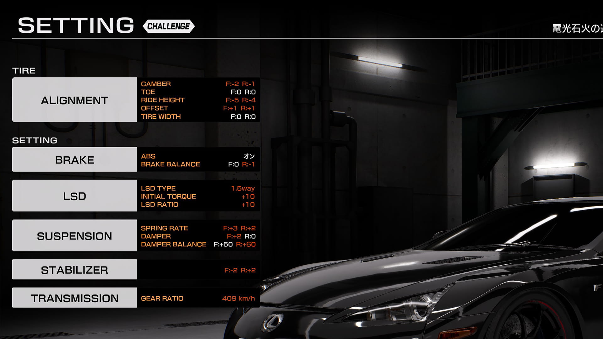 クリアに使用したLexus(LFA10)のセッティング内容もご紹介。